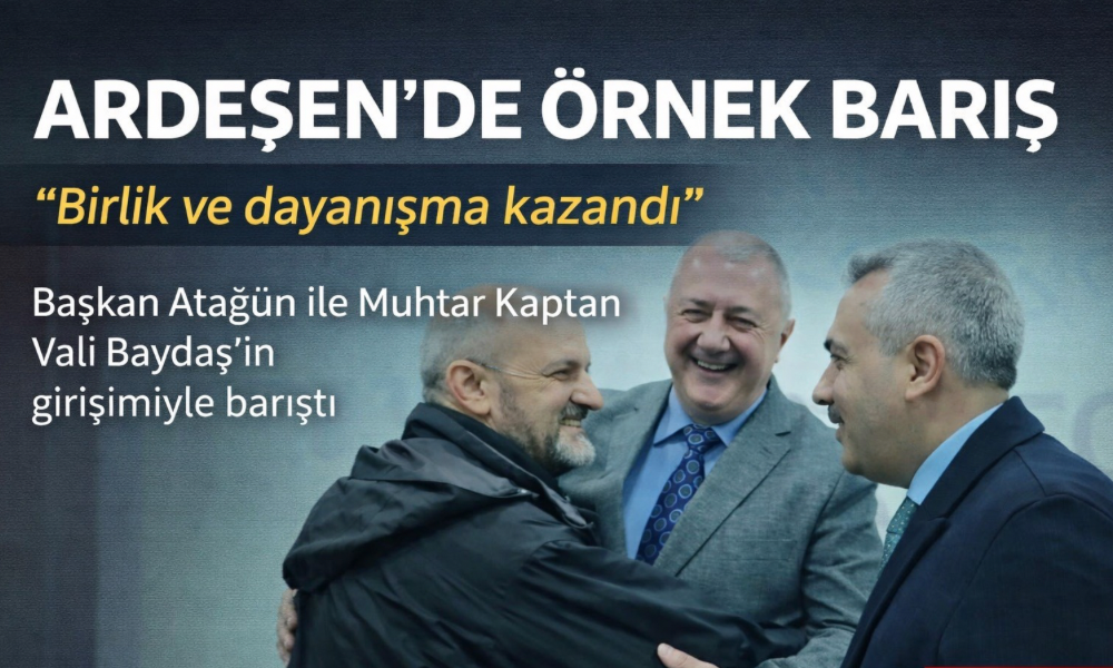 Ardeşen’de düzenlenen muhtarlar toplantısında dikkat çeken bir gelişme yaşandı. Bir yılı aşkın süredir aralarında kırgınlık bulunan Ardeşen Belediye Başkanı Enver Atağün ile Deniz Mahallesi Muhtarı Kadir Kaptan, Rize Valisi İhsan Selim Baydaş’ın arabuluculuğunda bir araya geldi.