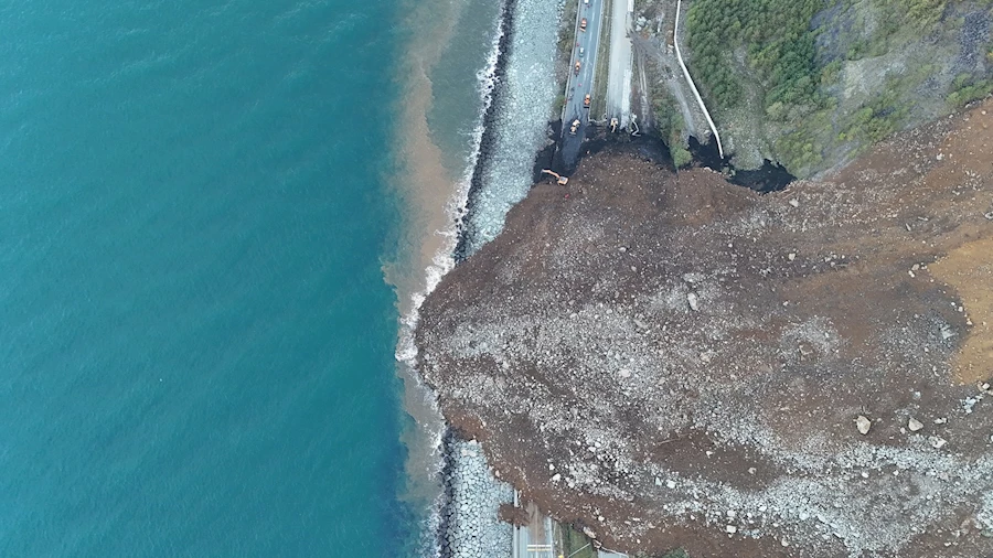 Gece 03.15 sıralarında meydana gelen dev heyelanda yamaçtan kopan Kaya ve toprak parçaları Karadeniz sahil yolunu Ulaşıma kapatırken, heyelanın denize kadar olan alanı doldurması heyelanın boyutunu da gözler önüne serdi.