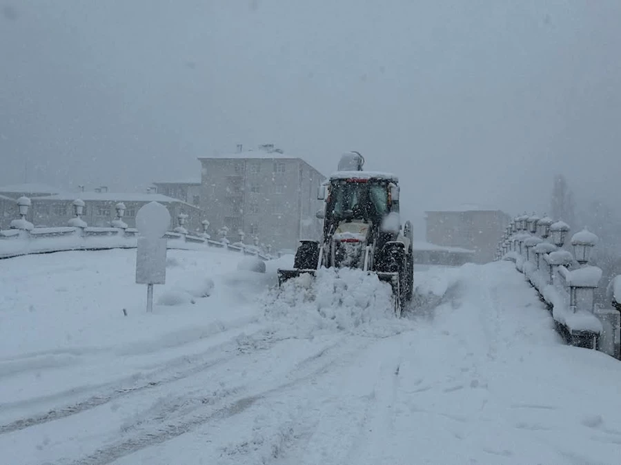Yoğun kar yağışının hayatı olumsuz etkilediği ilçede, belediye ekiplerinin sahada çalışmalarını sürdürdüğü bildirildi.