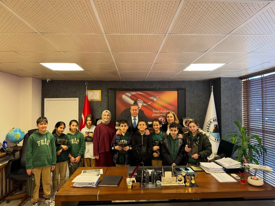RİZE/ Pazar – Pazar Belediye Başkanı Neşet Çakır, Fuat Ergenç Ortaokulu öğrencilerini makamında kabul etti.