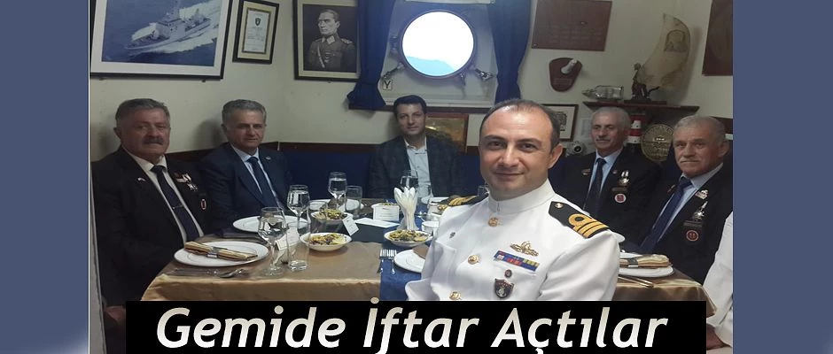 HOPA-Hopa Kaymakamı Abdurrezzak Canpolat, Belediye Başkanı Taner Ekmekçi ve Muharip Gaziler Derneği Başkanı Şükrü Akbıyık TCG KILIÇ(P-330) gemisinde düzenlenen iftar programına katıldılar.