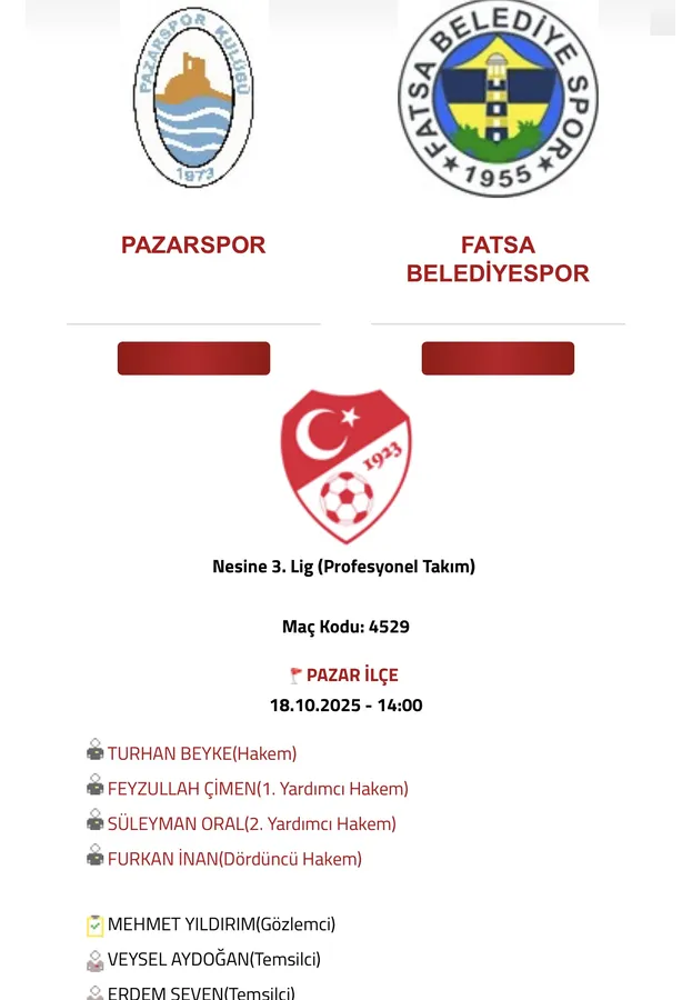 Nesine 3. Lig’de 7. Hafta karşılaşmaları, Pazar ilçesini nefes kesecek bir mücadeleye hazırlıyor. 18 Ekim 2025 Cumartesi günü saat 14:00’te Pazar İlçe Stadyumu’nda oynanacak bu kritik randevuda Pazarspor, güçlü rakibi Fatsa Belediyespor’u ağırlıyor.