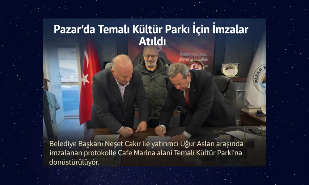 Neşet Çakır ile hayırsever iş insanı Uğur Aslan arasında Pazar ilçesine kazandırılacak “Temalı Kültür Parkı” projesi için protokol imzalandı.