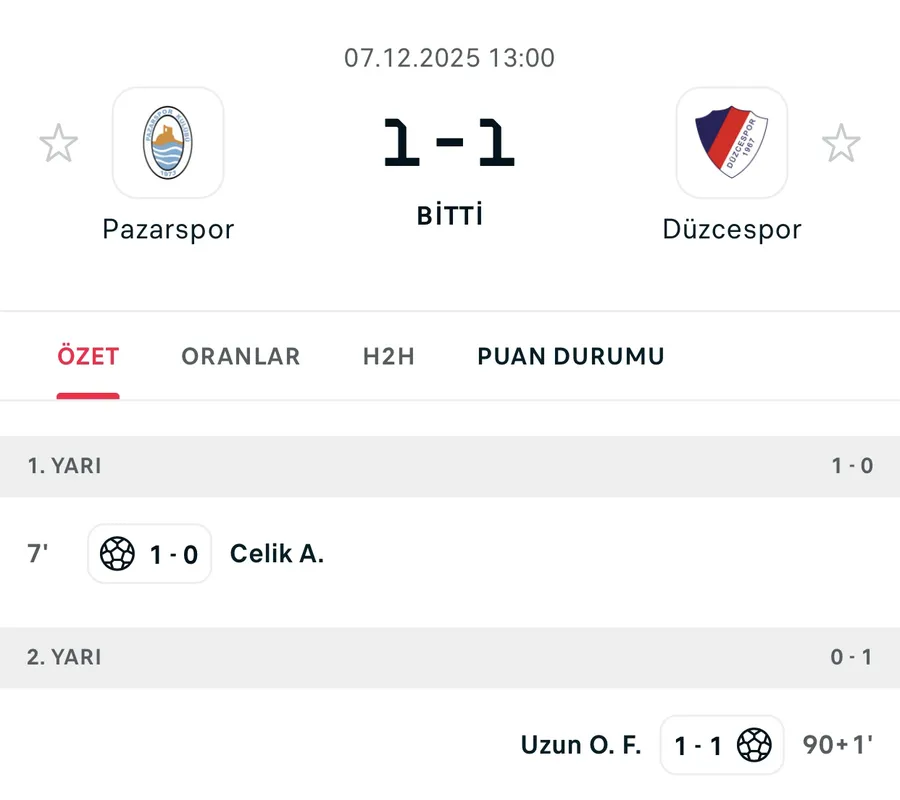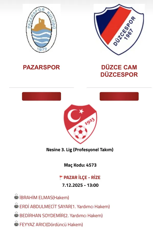 PAZARSPOR-RİZESPOR 7.12.2025 14:44:00 366 0