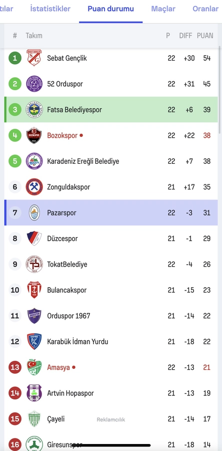 Bu sonuçla Pazarspor puanını 31’e yükseltirken, üst sıralara yaklaşma yolunda kritik bir virajı kayıpsız geçti. Ev sahibi Fatsa Belediyespor ise 39 puanda kaldı.