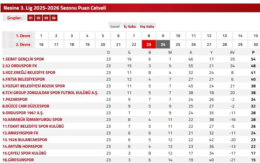 Konuk ekip Giresunspor ise ligde zor günler geçiriyor. 23 maç sonunda 15 puanda kalan Giresun temsilcisi 16. sırada bulunuyor.