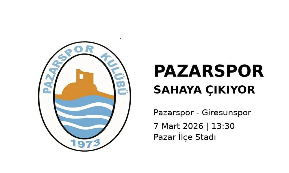 Nesine 3. Lig 2025–2026 sezonunda mücadele eden Pazarspor, ligin 23. haftasında Karadeniz derbisine çıkıyor. Mavi-beyazlı ekip, 7 Mart 2026 Cumartesi günü saat 13.30’da Pazar İlçe Stadı’nda Giresunspor’u konuk edecek.
