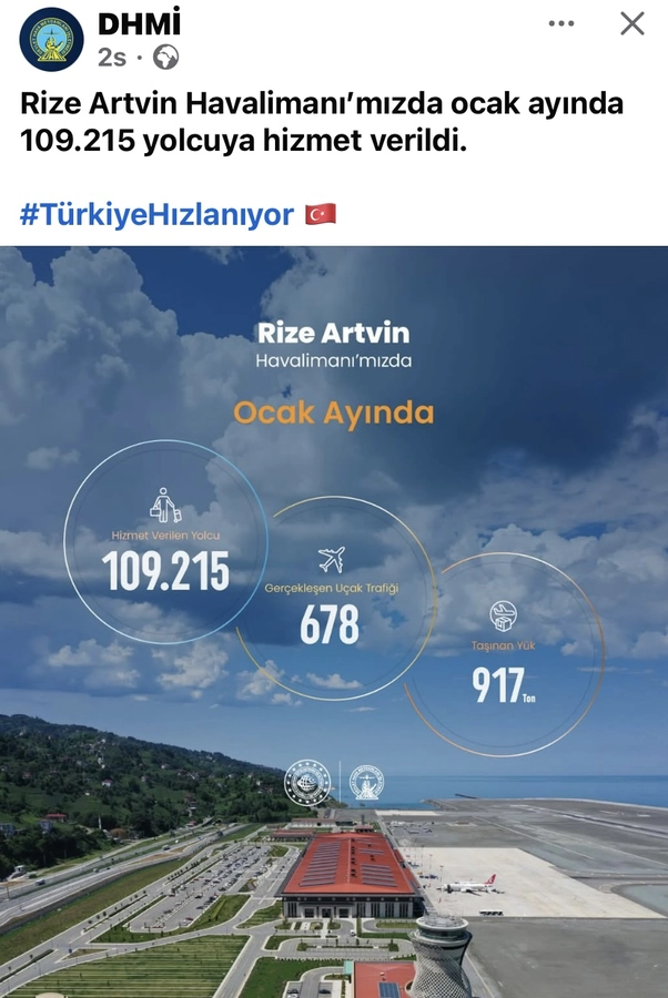 Ulaştırma ve Altyapı Bakanlığı koordinasyonunda yürütülen çalışmalarla, bölgenin dünyaya açılan kapısı olan Rize-Artvin Havalimanı, yerel halk ve turistler için konforlu bir ulaşım alternatifi sunmaya devam ediyor. Sosyal medya üzerinden paylaşılan veriler, #TürkiyeHızlanıyor etiketiyle kamuoyuna duyuruldu.