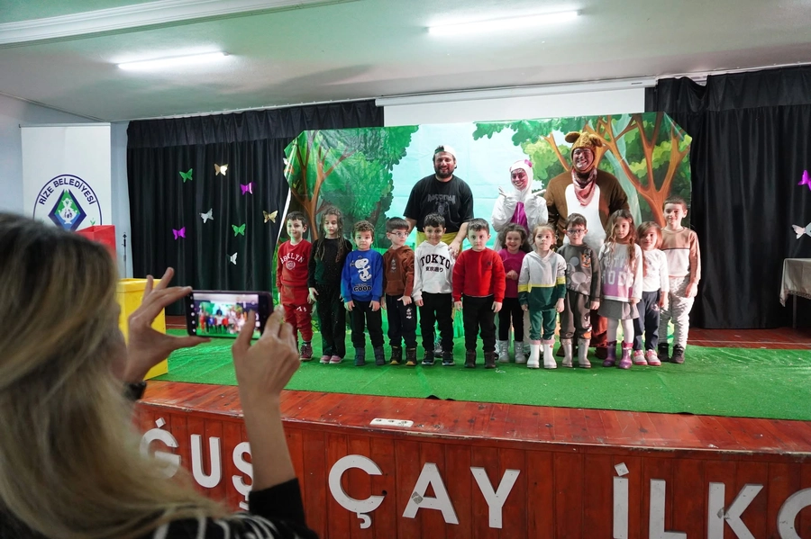 Rize Belediyesi, çocuklara çevre bilinci kazandırmak amacıyla sıfır atık temalı tiyatro gösterisi düzenledi.
