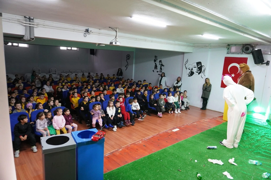 Eğitici ve eğlenceli içerikle hazırlanan tiyatroda; atıkların doğru ayrıştırılması, geri dönüşümün doğaya katkısı ve sıfır atık uygulamalarının önemi interaktif anlatımla aktarıldı. Minik öğrenciler hem eğlendi hem öğrendi.