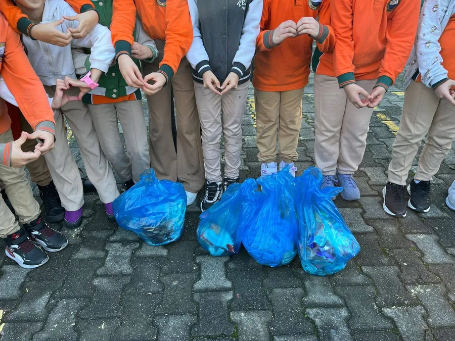 Toplanan atıkların mavi poşetler içinde bir araya getirildiği görülen etkinlikte, çocuklar taşıdıkları pankartlarla da çevre bilincine dikkat çektiler. Pankartlarda "ÇÖPLER DOĞAYA DEĞİL, ÇÖP KUTUSUNA" ve "NESİL YARIN DEMEK, BİZLER EL ELE VERİRSEK, YARIN GELECEK" gibi sloganlar yer aldı.