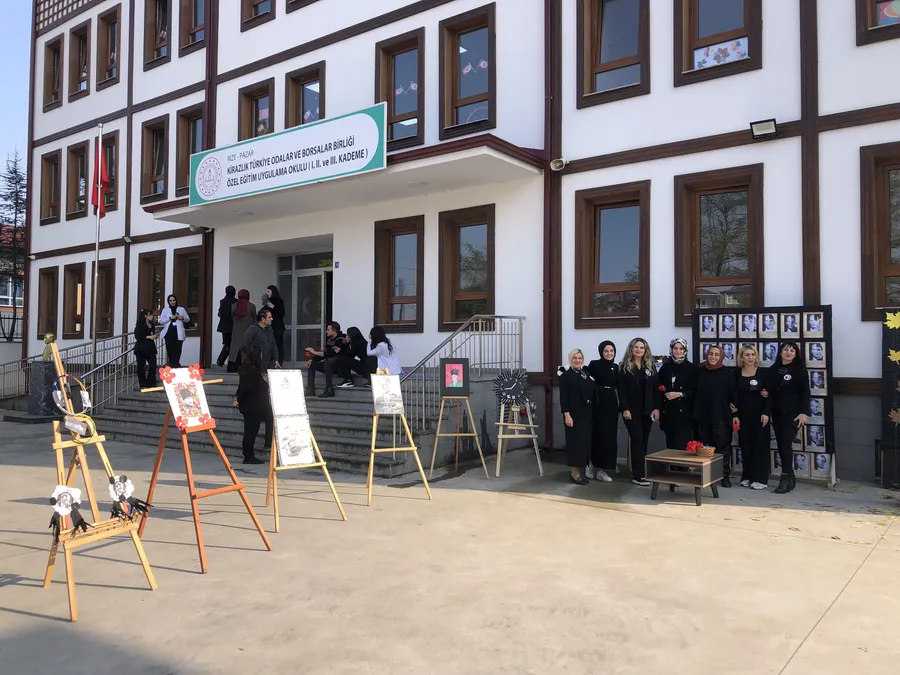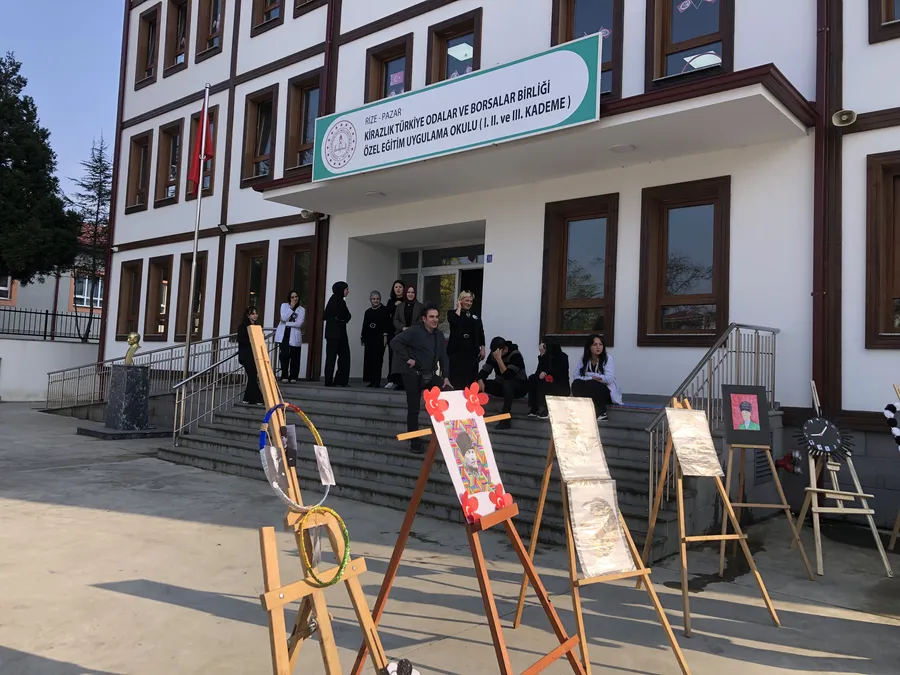 Pazar Kirazlık TOBB Özel Eğitim Uygulama Okulu'nda, Cumhuriyetimizin kurucusu Gazi Mustafa Kemal Atatürk'ü anma ve mirasına sahip çıkma adına yürek ısıtan bir etkinlik gerçekleştirildi. Sizin de mensubu olmaktan gurur duyduğunuz Pazar ilçemizin bu güzide okulunda, 10 Kasım Atatürk’ü Anma Günü vesilesiyle özel öğrencilerimizin el emeği, göz nuru "Atatürk" temalı çalışmaları okul bahçesinde sergilendi.