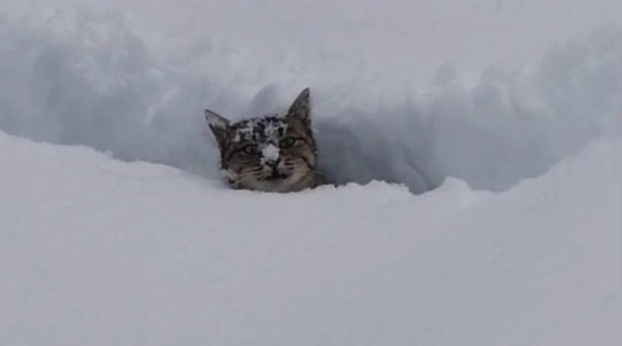 RİZE’nin Hemşin ilçesinde kar kalınlığının 1 metreye ulaştığı Kantarlı köyünde, evin bahçesinde mahsur kalan kedi, sahibi tarafından yoğun kar kütleleri arasından kürekle yol açılarak kurtarıldı. Karın içinde sadece kafası görünen kedinin kurtarılma anları ve sahibiyle olan diyaloğu gülümsetti.