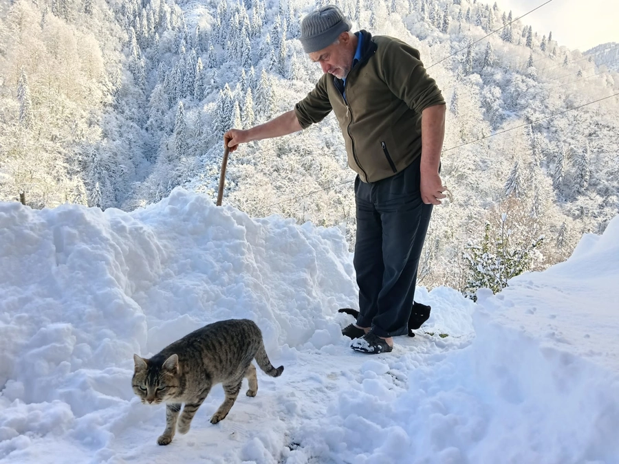 Hemşin ilçesine bağlı Kantarlı köyünde kar kalınlığı bir metreye ulaştı. Sabah uyandığında kedisini göremeyen Nazım Kantar, "Çedi" diye seslendiği kedisinin bahçede mahsur kaldığını fark etti. Kendi imkanlarıyla yoğun kar kütlesini kazmaya başlayan Kantar, metrelerce karı kürüyerek kedisine ulaştı.