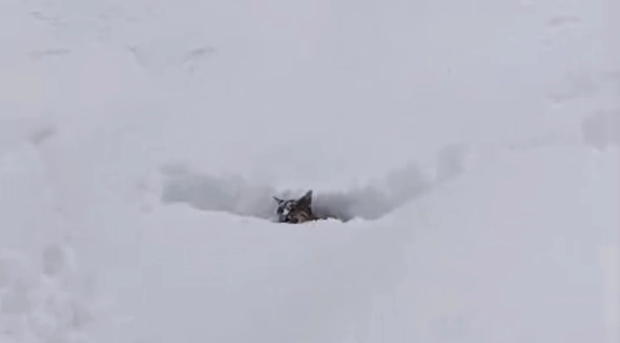 Nazım Kantar’ın kardeşi tarafından saniye saniye kaydedilen görüntülerde, kedinin karın içinde adeta kaybolduğu ve sadece yüzünün dışarıda kaldığı görüldü. Yoğun çabanın ardından kurtarılan kedi, güvenli alana alındı.