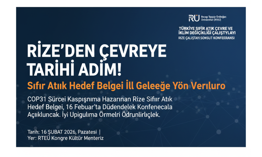 RİZE (İHA/DHA) – Rize, sürdürülebilir bir gelecek ve iklim değişikliği ile mücadele yolunda tarihi bir güne hazırlanıyor. "Yerelden Ulusala İsraf ve Atık" temasıyla hayata geçirilen ve 22 Ocak 2026’da tüm yerel paydaşların katılımıyla ön çalışmaları tamamlanan Rize Çalıştayı Sonuç Konferansı, Recep Tayyip Erdoğan Üniversitesi (RTEÜ) ev sahipliğinde kapılarını açıyor.