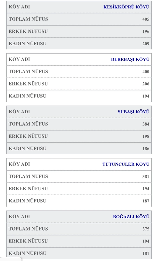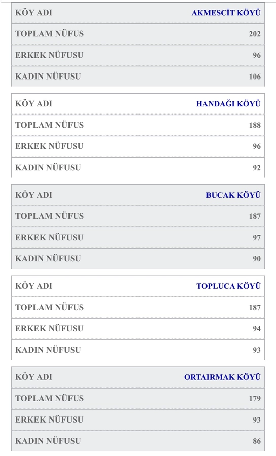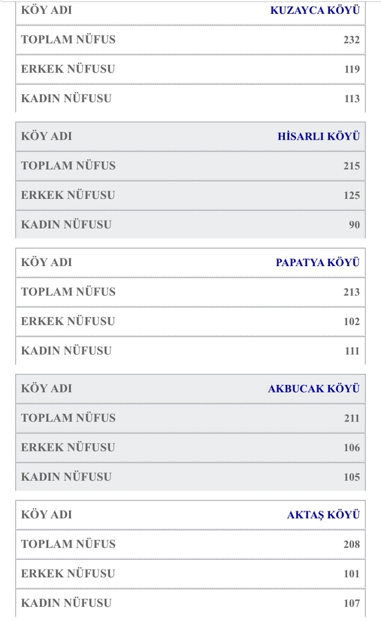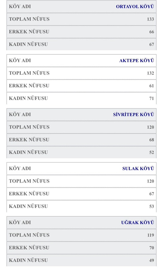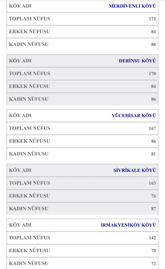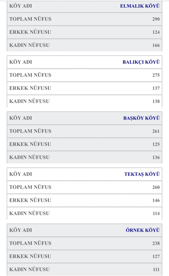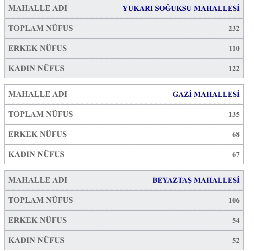 İLÇEYE BAĞLI MAHALLE NÜFUSLARI