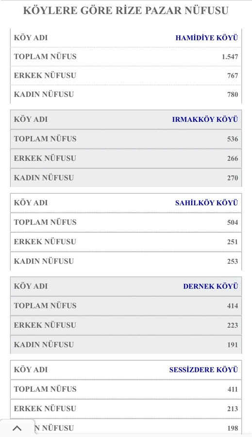 Rize’nin Pazar ilçesine bağlı mahalle ve köylerde yaşayan nüfus dağılımı belli oldu.
