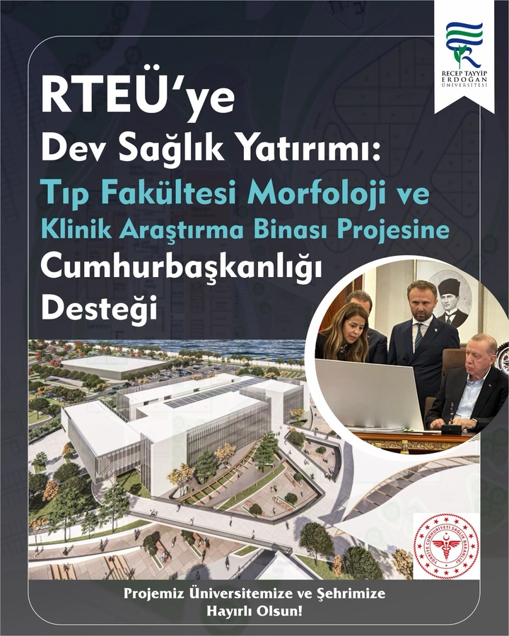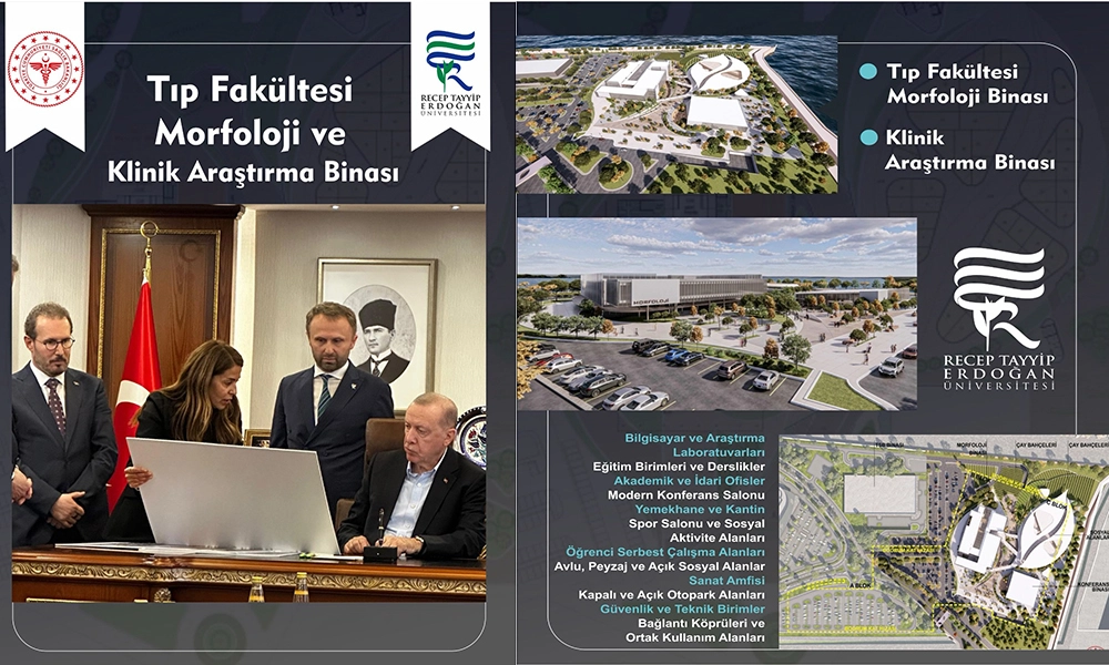 Recep Tayyip Erdoğan Üniversitesi, Tıp Fakültesi Morfoloji ve Klinik Araştırma Binası projesine ilişkin önemli bir gelişmeyi sosyal medya hesabı üzerinden kamuoyuyla paylaştı. Üniversite yönetimi, modern konferans salonu ve sosyal alanları da içeren projenin hayata geçirilmesi yönünde önemli bir aşamaya gelindiğini duyurdu.