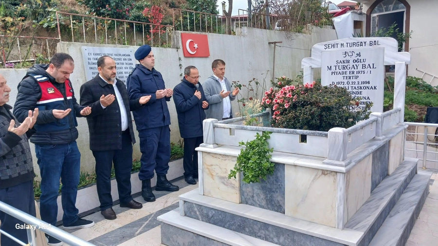 Rize Pazar İlçe Müftüsü Murteza Gür, beraberindeki heyetle birlikte şehit Turgay Bal’ın şehadet yıldönümü vesilesiyle Sessizdere Köyü’ndeki kabrini ziyaret etti.