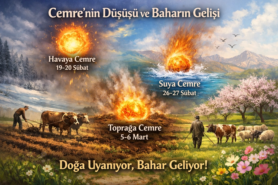Halk inancına göre “ateş parçası” ve “kor halindeki ateş” anlamına gelen cemre, havayı, suyu ve toprağı ısıtarak mevsim geçişini simgeliyor.