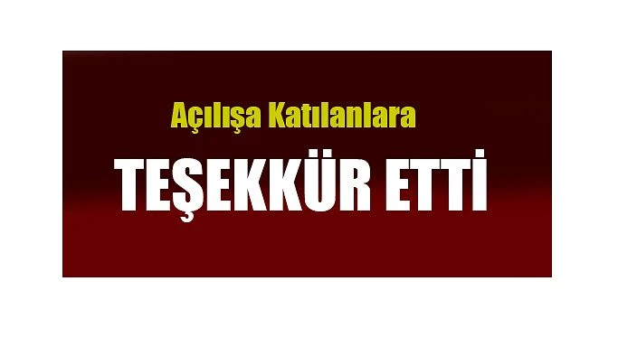 Kurum Müdürlerimize, Muhtarlarımıza, İş Dünyasından ve Esnaflarımızdan Dostlarımıza kadar açılışımıza katılanlara, gönderdikleri Çelenklerle ve açtıkları Telefonlarla bu mutlu günümüzde bizleri tebrik edip kutlayan dost ve arkadaşlarımıza can-ı gönülden Teşekkür ederiz.