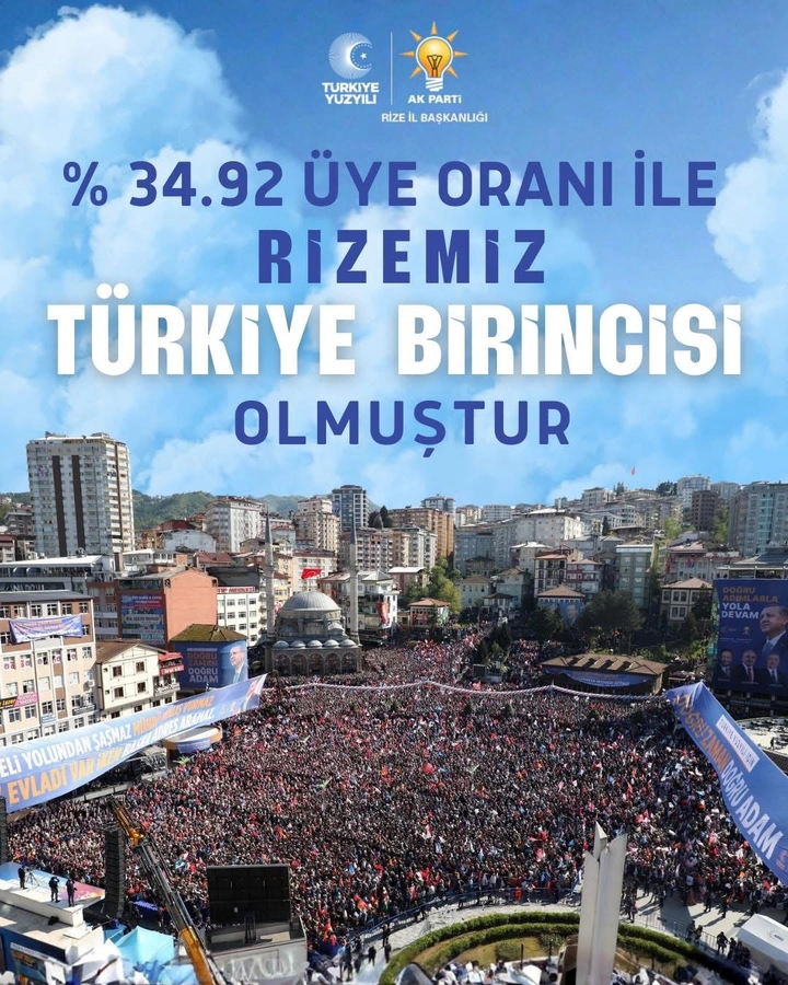 İl Başkanlığı görevine 7 Ağustos 2024’te başladığında Rize’de 89 bin 588 olan üye sayısının, 31 Aralık 2025 itibarıyla yüzde 5,4 artışla 94 bin 474’e yükseldiğini kaydeden Katmer, Genel Merkez tarafından belirlenen yüzde 25’lik hedefin Rize’de yüzde 34,92 oranıyla aşıldığını ve bu başarıyla Rize teşkilatının Türkiye birincisi olduğunu söyledi.