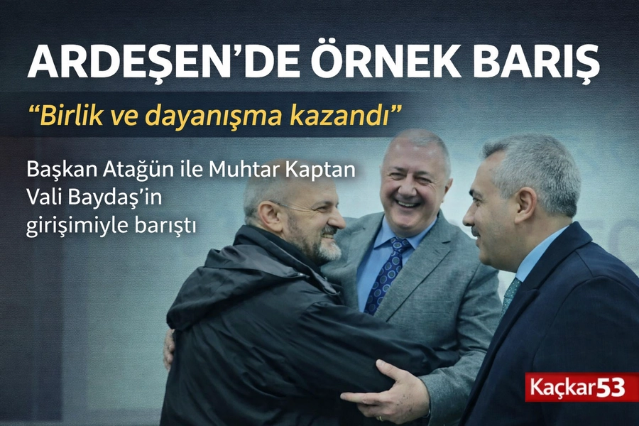 Ardeşen’de düzenlenen muhtarlar toplantısında dikkat çeken bir gelişme yaşandı. Bir yılı aşkın süredir aralarında kırgınlık bulunan Ardeşen Belediye Başkanı Enver Atağün ile Deniz Mahallesi Muhtarı Kadir Kaptan, Rize Valisi İhsan Selim Baydaş’ın arabuluculuğunda bir araya geldi.