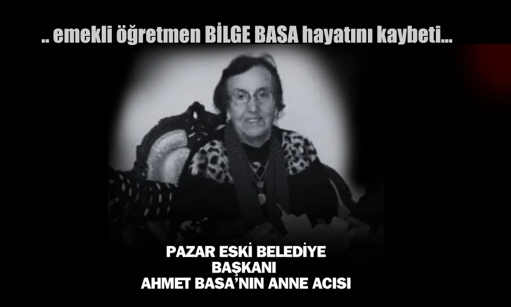 PAZAR-Pazar eski Belediye Başkanı Dr. Ahmet Basa’nın annesi emekli öğretmen Bilge Basa(86), hayatını kaybetti.