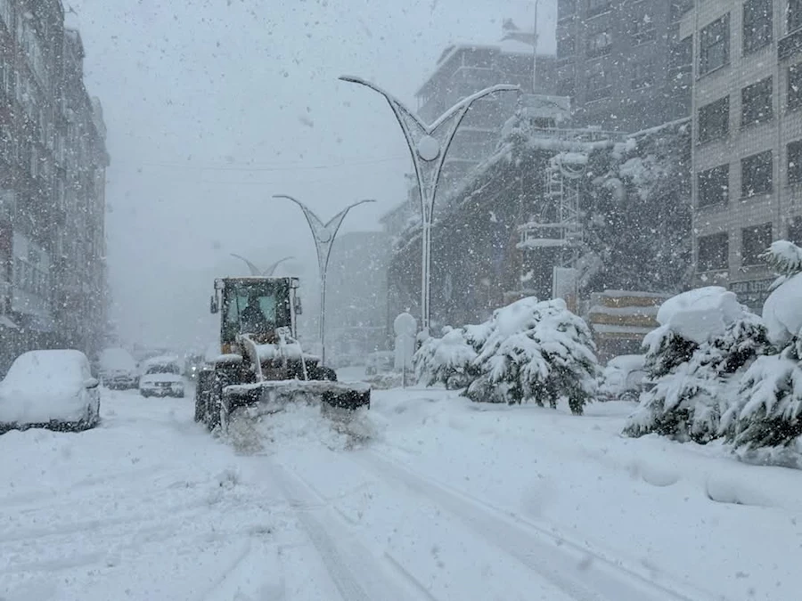 Yoğun kar yağışının hayatı olumsuz etkilediği ilçede, belediye ekiplerinin sahada çalışmalarını sürdürdüğü bildirildi.