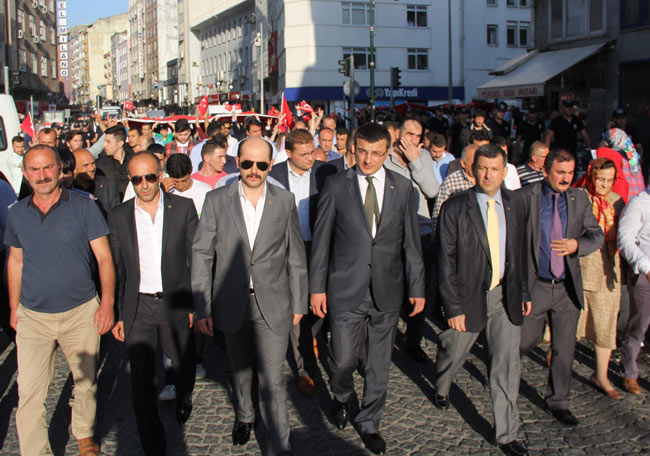 Rize’de MHP'nin organize ettiği programda, Türk Bayrakları ile yürüyen vatandaşlar, Diyarbakır'daki 2. Hava Kuvvetleri Komutanlığı’nda Türk Bayrağı’nın indirilmesini protesto ederek bayraklarına sahip çıktı.