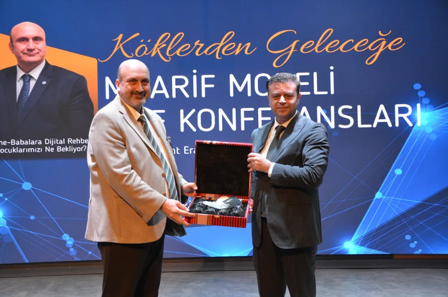 Programın sonunda, İl Millî Eğitim Müdürü Halil İbrahim Akmeşe, katkılarından dolayı Prof. Dr. Levent Eraslan’a günün anısına bir hediye takdim etti.