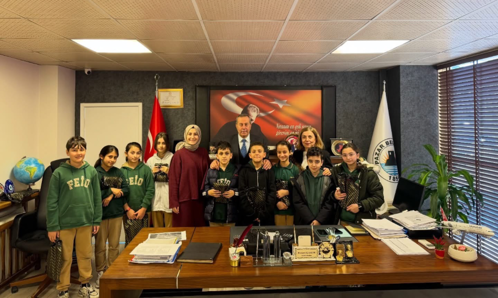RİZE/ Pazar – Pazar Belediye Başkanı Neşet Çakır, Fuat Ergenç Ortaokulu öğrencilerini makamında kabul etti.
