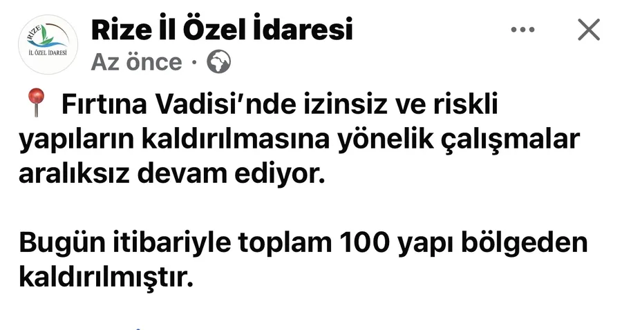 Rize - Rize İl Özel İdaresi, bölgenin doğal güzelliği ve ekosistemi için kritik öneme sahip olan Fırtına Vadisi'nde izinsiz ve sel/taşkın riski taşıyan yapılarla mücadelesini kararlılıkla sürdürüyor.