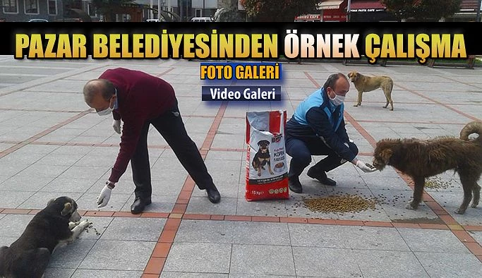 Pazar Demokrasi meydanında sokağa çıkma yasağından dolayısıyla aç kalan başıboş köpeklerin yardımına Pazar Belediyesi ekipleri koştular. Belediye ekipleri sokak hayvanlarının beslenmesi ve aç kalmaması için yemleme yaptılar.