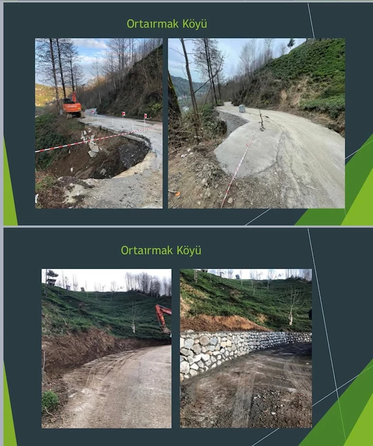 * Afetlere karşı koruma amacıyla 12 farklı noktada 1197 m³, 11 farklı noktada 826 m³, 2 farklı noktada 159 m³, 8 farklı noktada 688 m³, 1 noktada 126 m³ olmak üzere toplam 5548 m³ taş duvar ve menfez imalatı yapıldı.