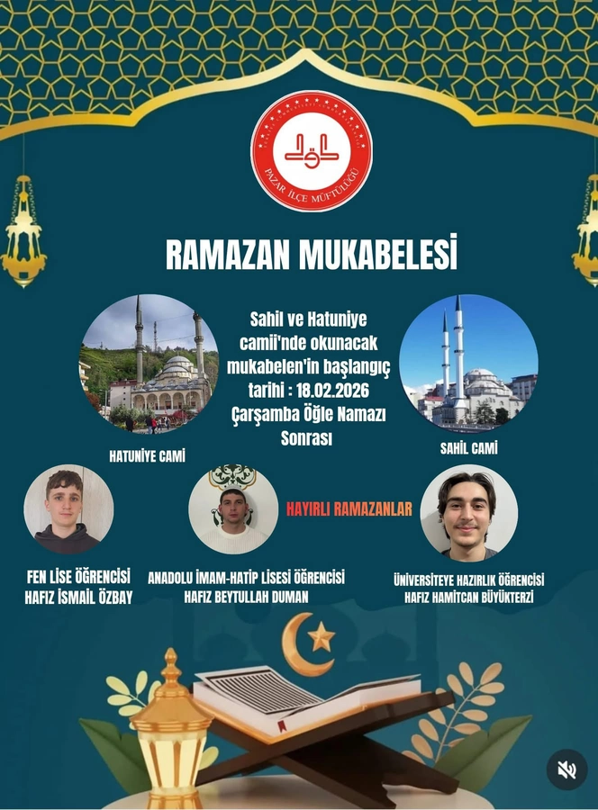 Müftülüğe bağlı Hatuniye Camii ve Sahil Camii’nde gerçekleştirilecek mukabele programı, 18 Şubat 2026 Çarşamba günü öğle namazı sonrası başlayacak.