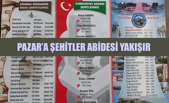 Bazılarının isimleri dahi bilinmiyor. Pazar Belediyesi olarak hazırlanan kataloglarda birçok kişinin isimleri tespit edilmiştir. İlçede, terörle mücadelede hayatını kaybeden şehitlerimiz içinde Anıt mezarlar bulundukları yerlerde yapılmış olup, tüm şehitlerimiz içinde mutlaka bir 'ŞEHİTLER ABİDESİ' yapılmalıdır.