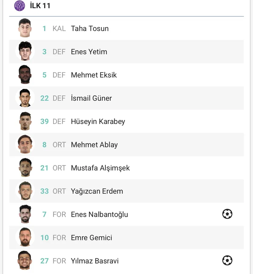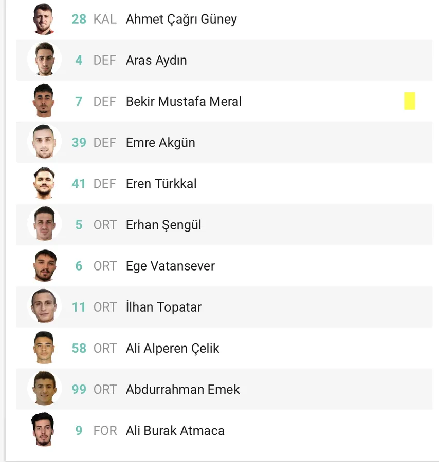Karşılaşmanın 31.dakikasında Enes Nalbantoğlu, 42.dakikasında Yılmaz Basravi nin attığı gollerle rakip 52 Orduspor FK ilk yarıyı 2-0 önde tamamladı.