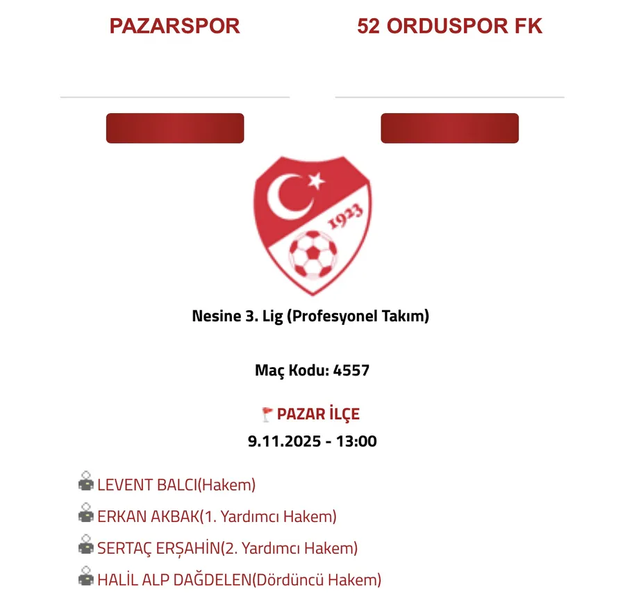 Nesine 3. lig 3.grup takımlarından Pazarspor evinde 52 Orduspor FK ile karşı karşıya geldi.