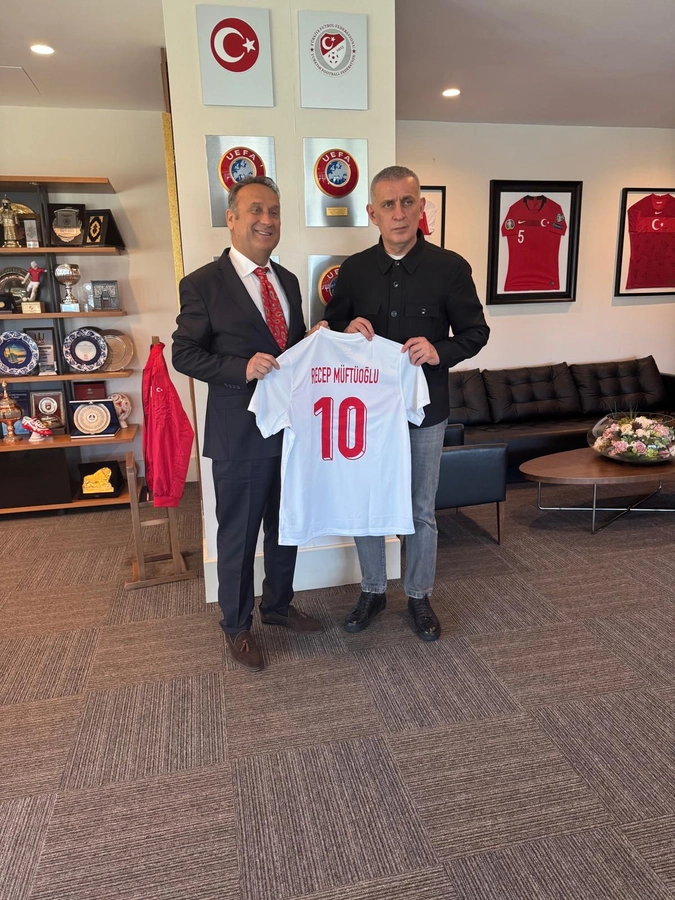 Ziyaretin sonunda TFF Başkanı Hacıosmanoğlu, nazik ziyaretinden dolayı Müftüoğlu’na teşekkür ederek isminin yazılı olduğu Milli Takım formasını takdim etti.