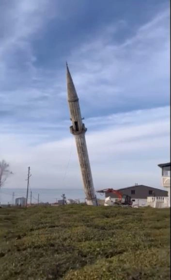 Minarenin yıkım anları, köy sakinlerinden Mustafa Memoğlu tarafından cep telefonu kamerasıyla kayda alındı. Görüntülerde minarenin halatlar yardımıyla kontrollü şekilde devrildiği görüldü.