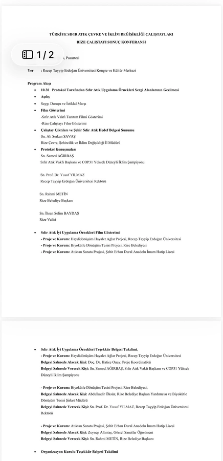 • Biyokütle Dönüşüm Tesisi Projesi (Rize Belediyesi): Belgeyi Rektör Prof. Dr. Yusuf Yılmaz’dan Belediye Başkan Yardımcısı Abdulkadir Öksüz teslim alacak.
