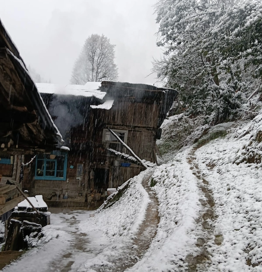 RİZE - Rize’nin yüksek kesimlerinde dün geceden itibaren etkili olan yoğun kar yağışı, rakımı bin metrenin altındaki köylere kadar ulaştı. Doğanın beyaz örtüyle kaplandığı köylerde kartpostallık görüntüler oluşurken, vatandaşlar kışın tadını çıkarmaya başladı.