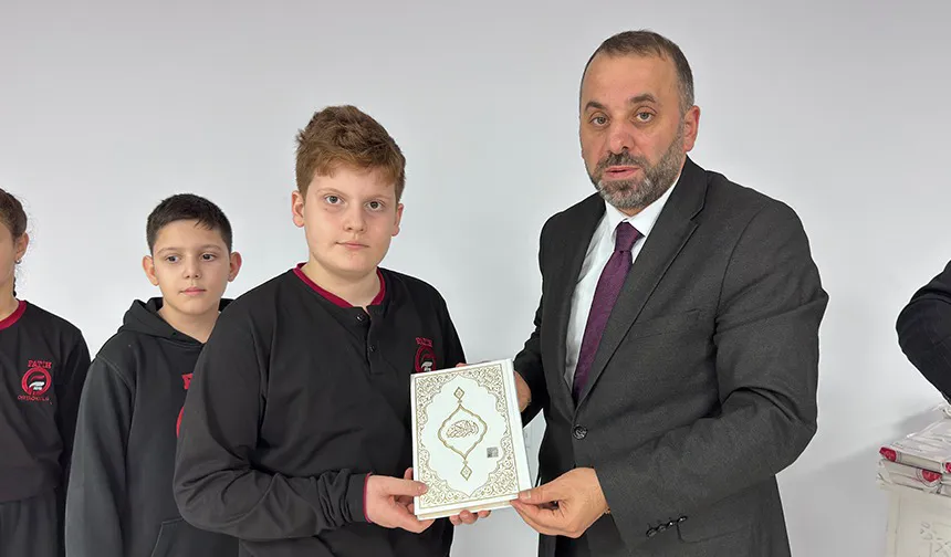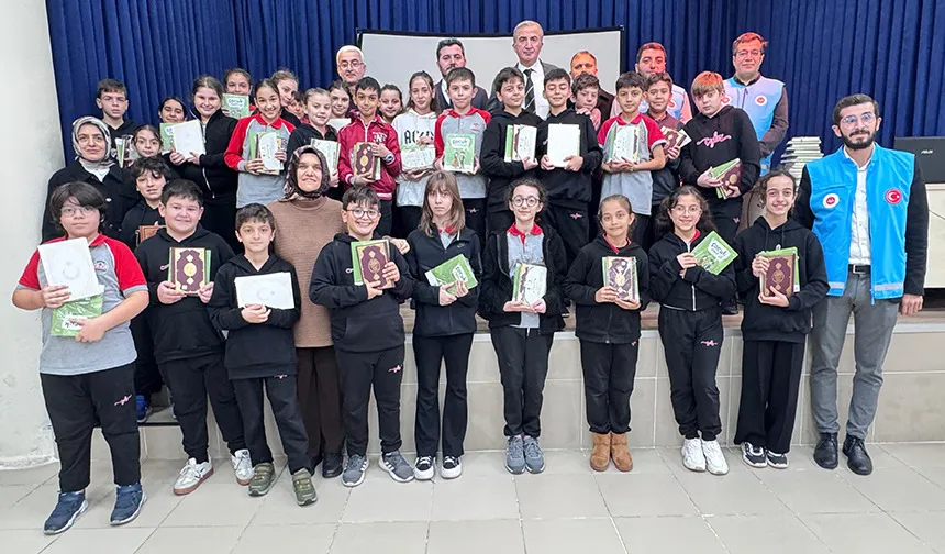 RİZE - Diyanet İşleri Başkanlığı ve Türkiye Diyanet Vakfı (TDV) tarafından yürütülen “Dersimi Seçiyorum Kur’an’ımı Alıyorum” projesi kapsamında, Rize’deki ortaokul 5. ve lise 9. sınıfta seçmeli Kur’an-ı Kerim dersini tercih eden tüm öğrencilere Kur’an-ı Kerim hediye edildi.