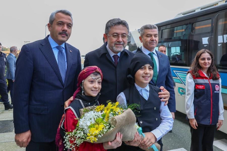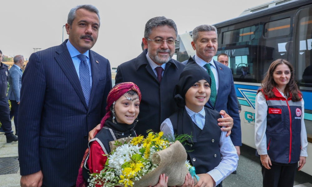 Bakan Yumaklı’ya karşılama sırasında yöresel kıyafetli çocuklar tarafından çiçek takdim edildi.
