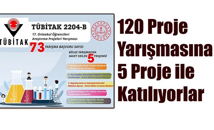 Artvin İl Milli Eğitim Müdürü Fahri Acar “Erzurum bölgesine davet edilen 120 projenin 5'i Artvin'den geldi. Emeği geçen tüm idareci, öğretmen ve öğrencileri yürekten kutluyoruz” dedi..