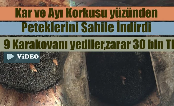 PAZAR-Rize’nin Çamlıhemşin ilçesi Ayder Doğa Alabalık Tesisleri işletmecisi Mustafa Memoğlu, Kar yağınca Kara Kovan Peteklerini Pazar İlçesi Sahil köyündeki evine taşıdı. Burada gece yarısı ortaya çıkan büyük bir Ayı ve yavruları peteklere saldırdı.